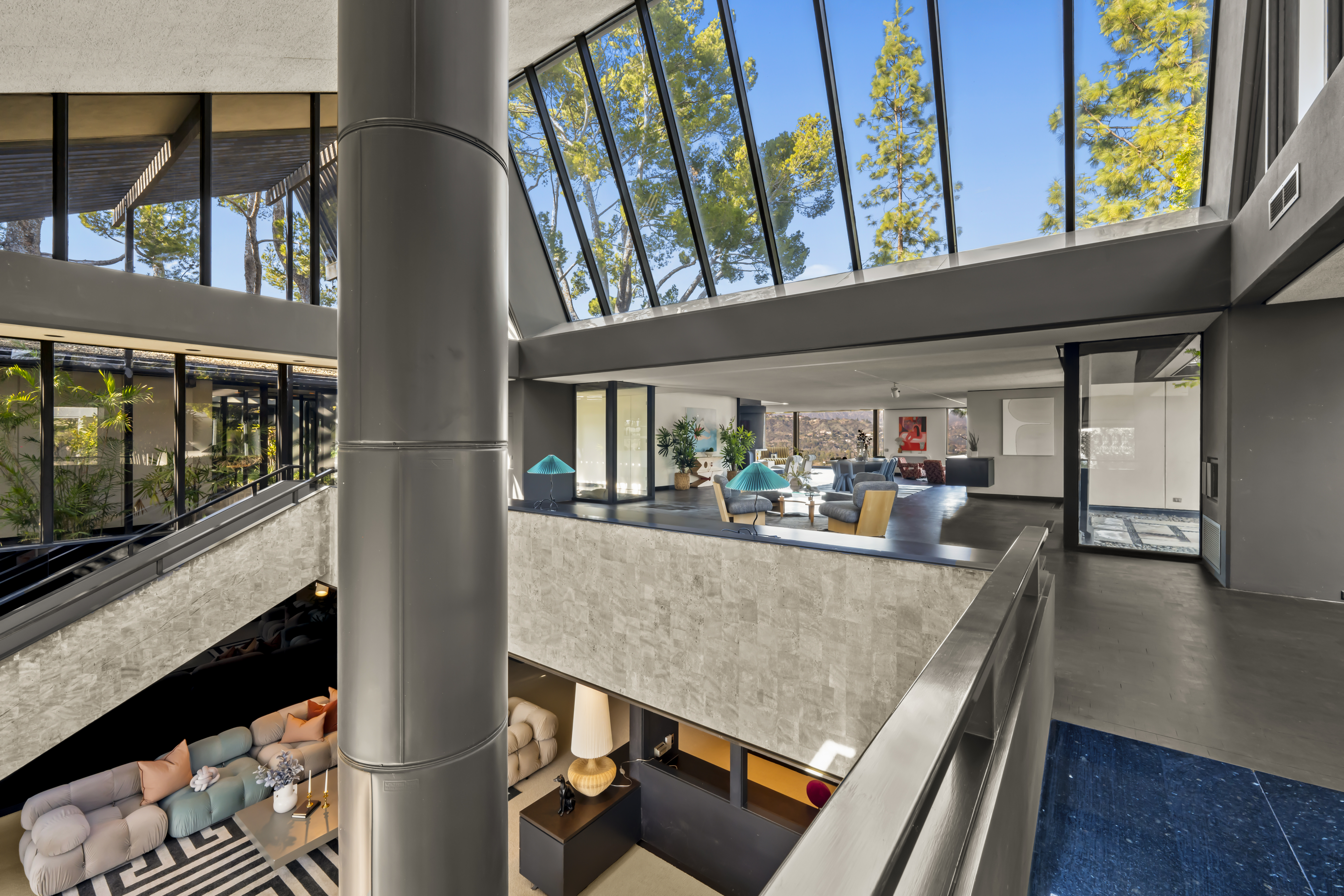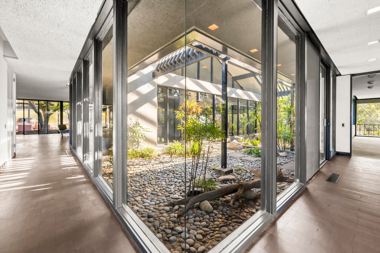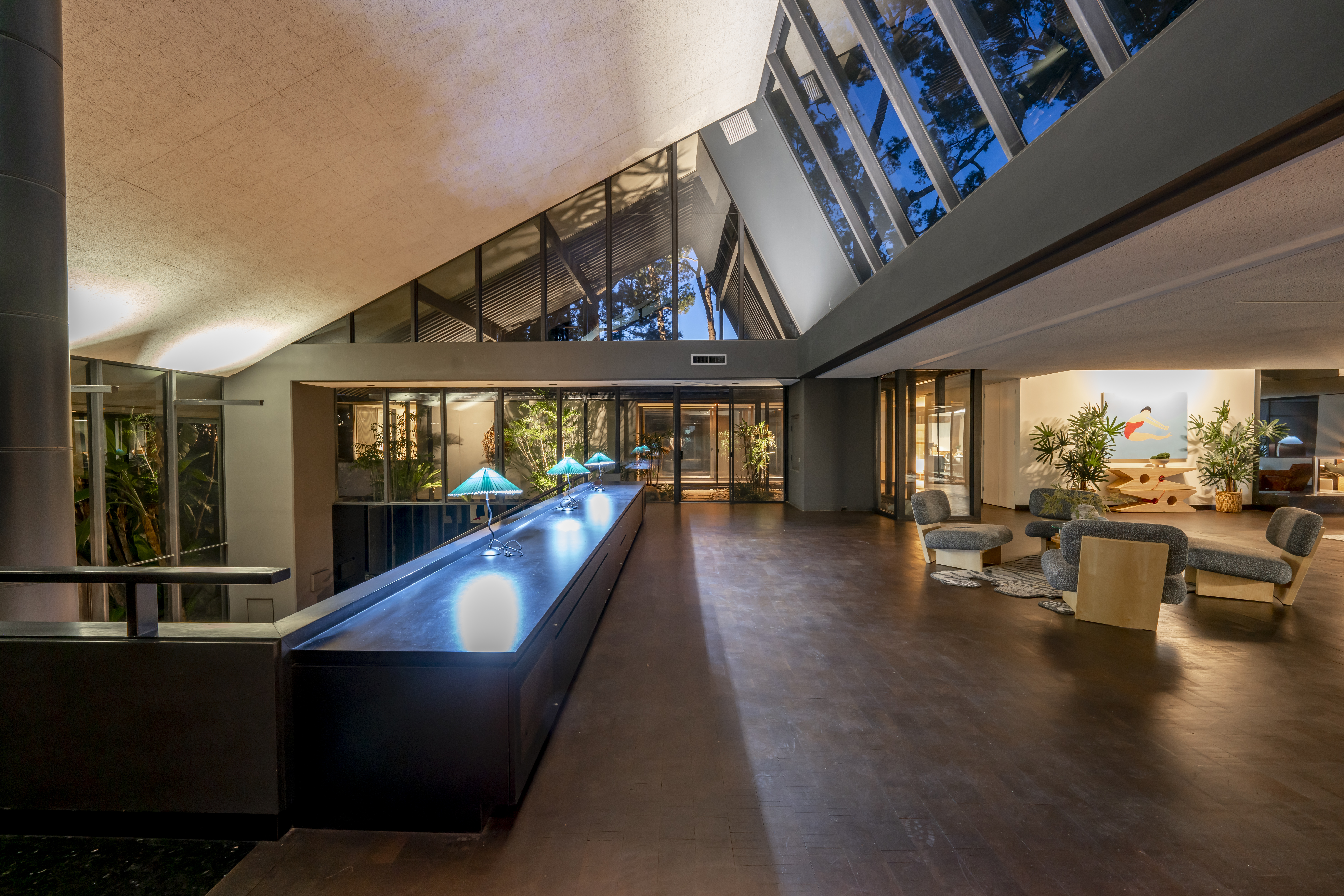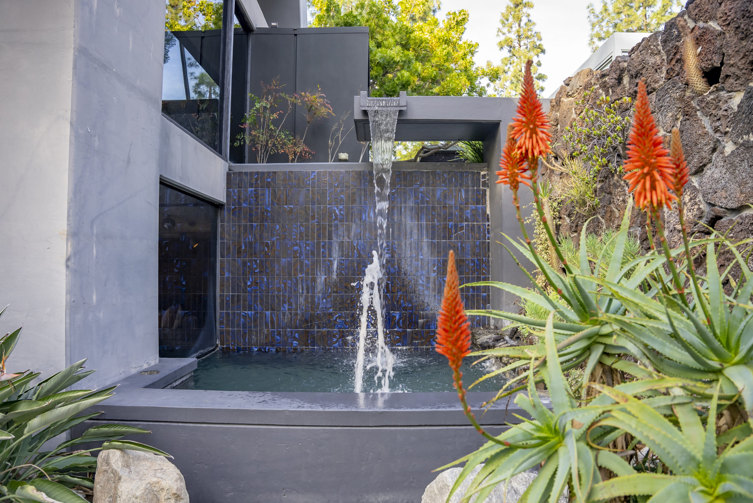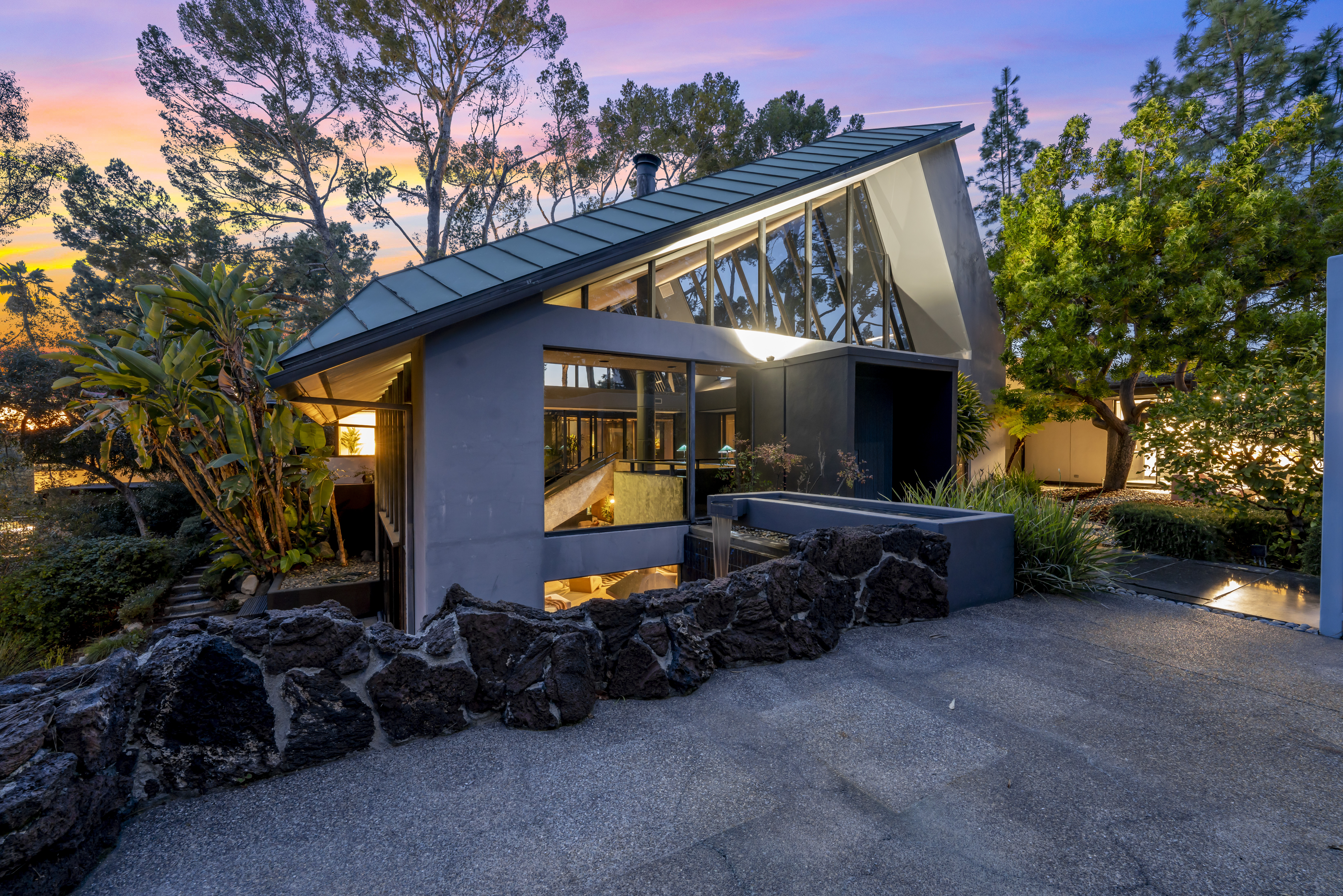 Live in an architectural masterpiece of the modernist style. Your residence was built in 1973 by Quincy Jones, a luminary and AIA award-winning architect. Jones' aesthetic runs throughout the home, from the intimate connection with nature to the high ceilings and walls of glass. You'll feel like you are in a treehouse as the home cantilevers over its elevated lot and into the surrounding vegetation. The open-plan design and striking setting create the perfect backdrop for all-season entertaining. Walls of glass bring in a ton of light and stunning views in every direction. The interior spaces flow seamlessly, offering an endless supply of picturesque vignettes marrying the built and natural environment. No matter your mood, 1100 Paso Alto Road is a place for revelry and rest. Enjoy a private view from your primary suite balcony, or pick a bench outside. The thoughtful design of the outdoor living area invites serenity to the soundtrack of trickling water.
