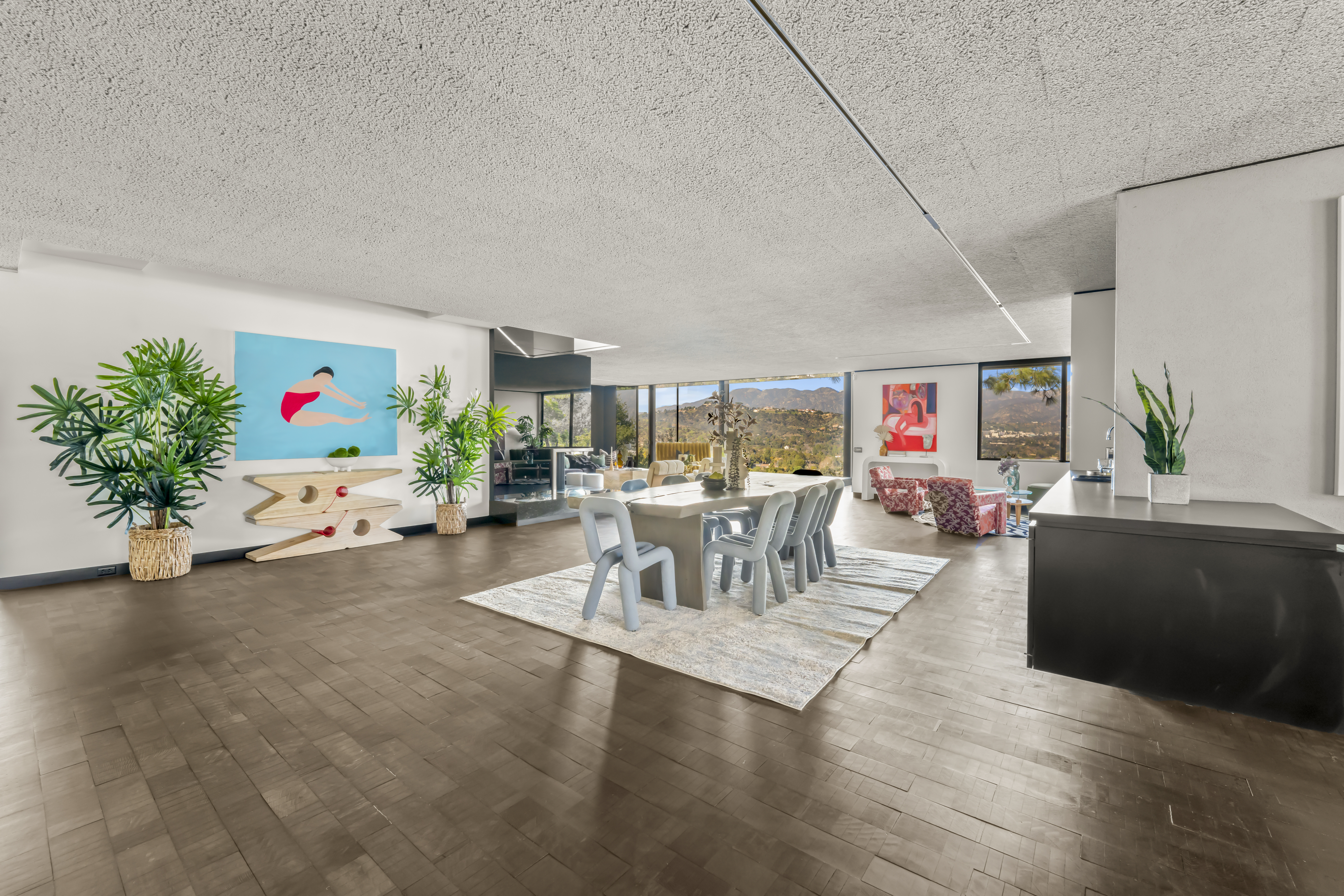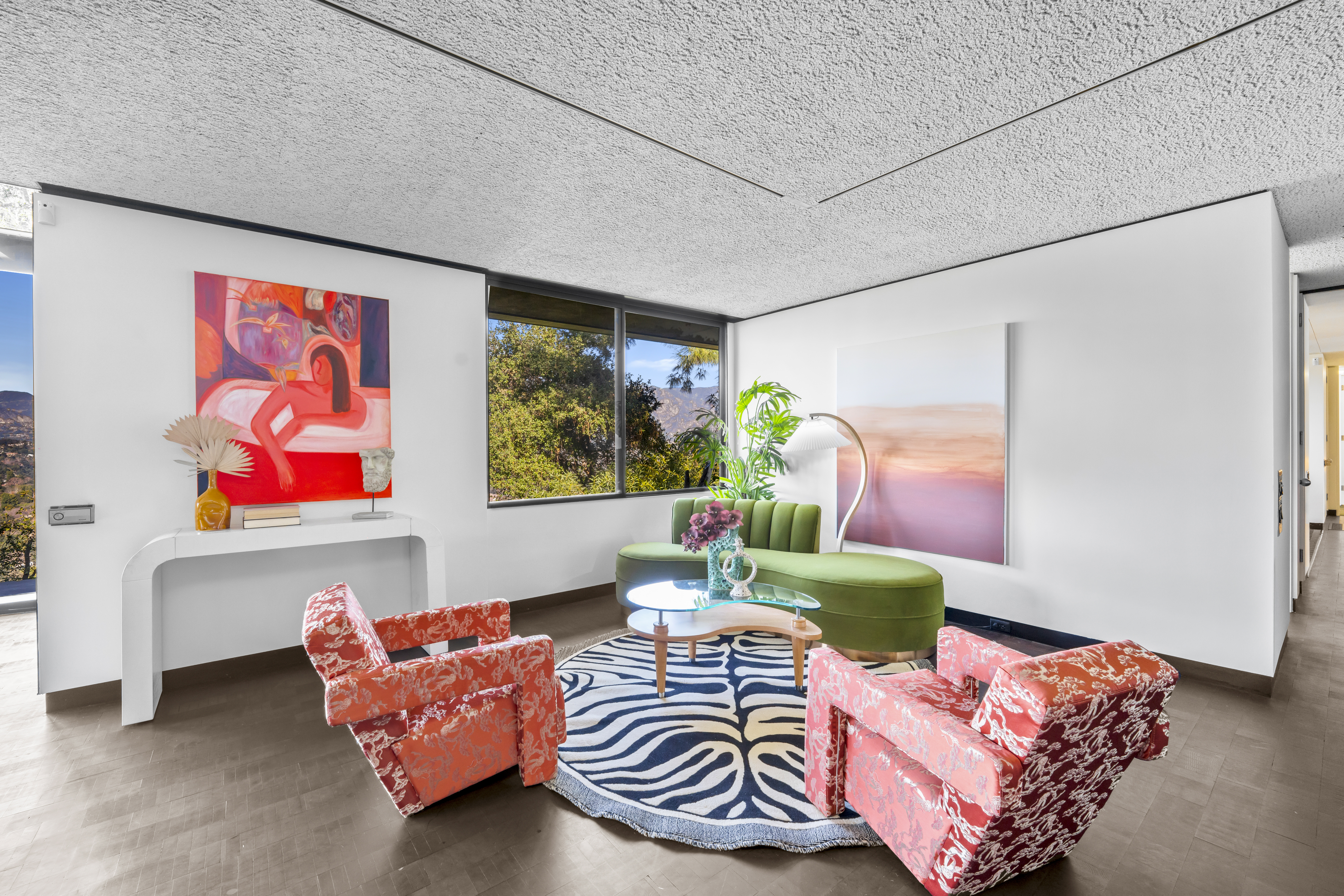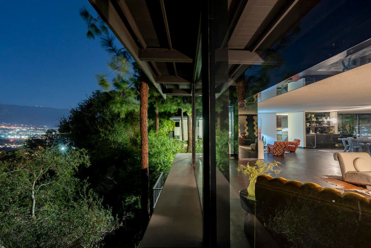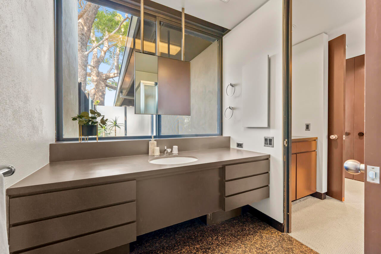 Live in an architectural masterpiece of the modernist style. Your residence was built in 1973 by Quincy Jones, a luminary and AIA award-winning architect. Jones' aesthetic runs throughout the home, from the intimate connection with nature to the high ceilings and walls of glass. You'll feel like you are in a treehouse as the home cantilevers over its elevated lot and into the surrounding vegetation. The open-plan design and striking setting create the perfect backdrop for all-season entertaining. Walls of glass bring in a ton of light and stunning views in every direction. The interior spaces flow seamlessly, offering an endless supply of picturesque vignettes marrying the built and natural environment. No matter your mood, 1100 Paso Alto Road is a place for revelry and rest. Enjoy a private view from your primary suite balcony, or pick a bench outside. The thoughtful design of the outdoor living area invites serenity to the soundtrack of trickling water.