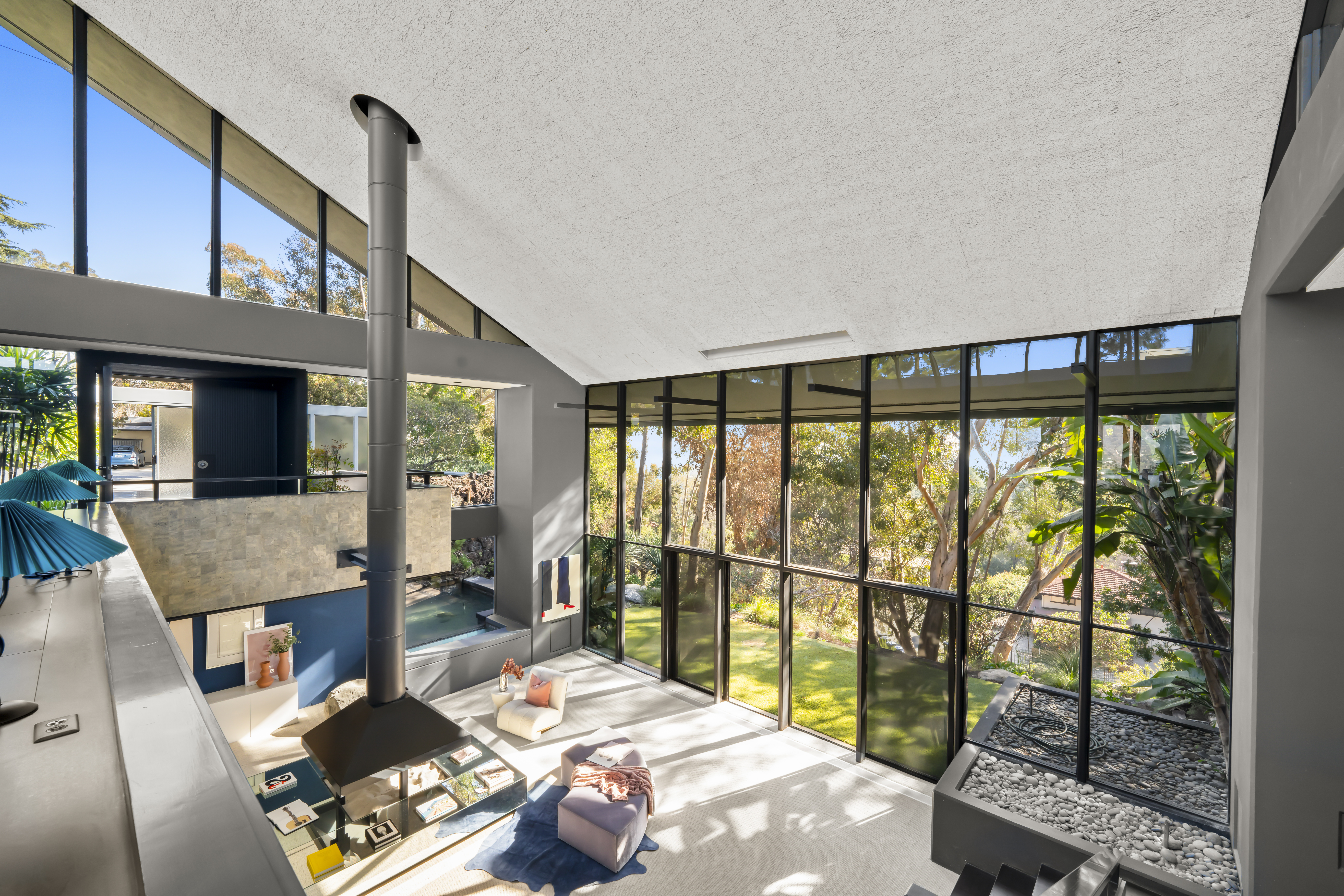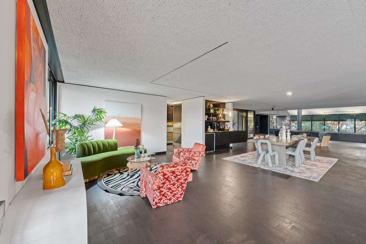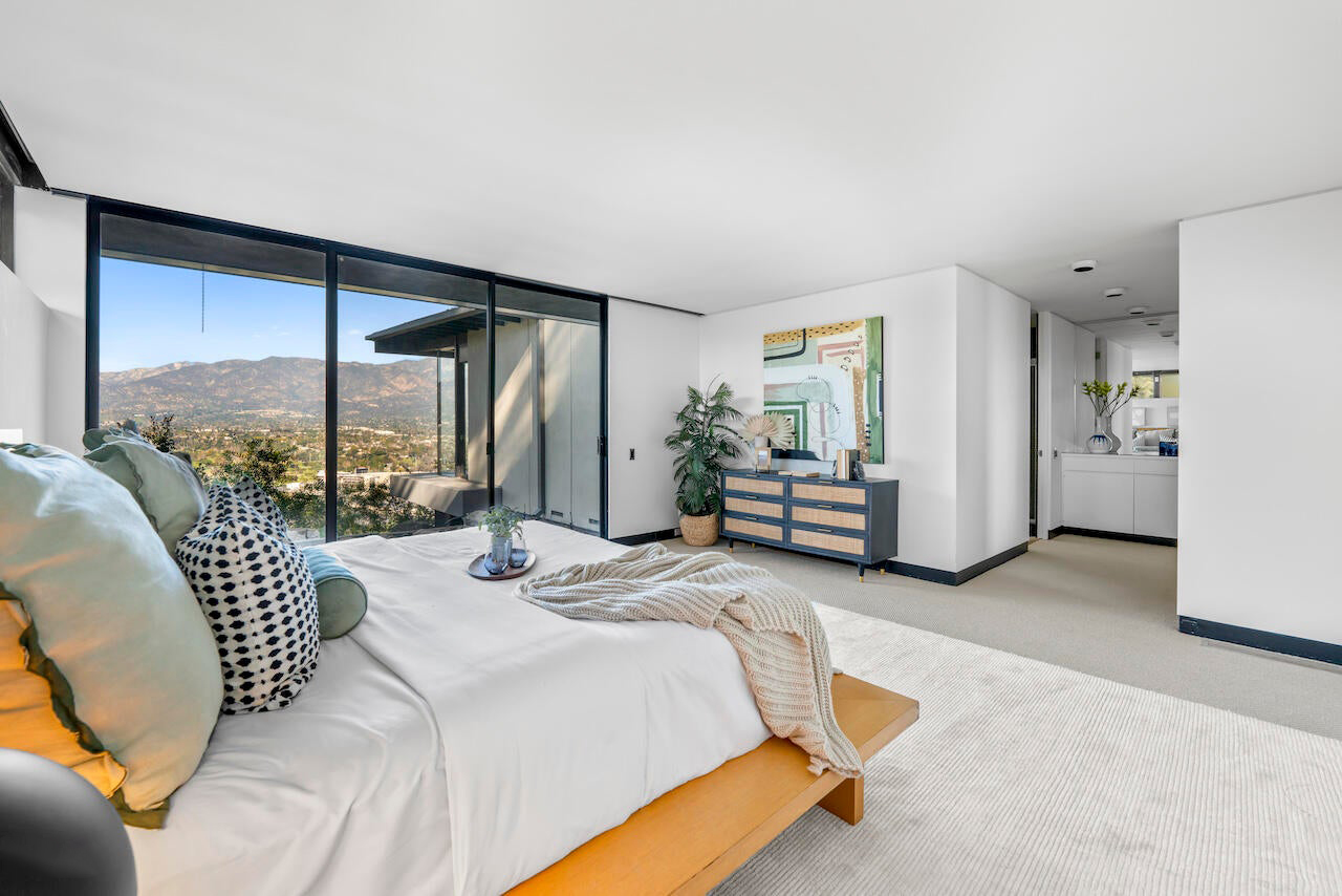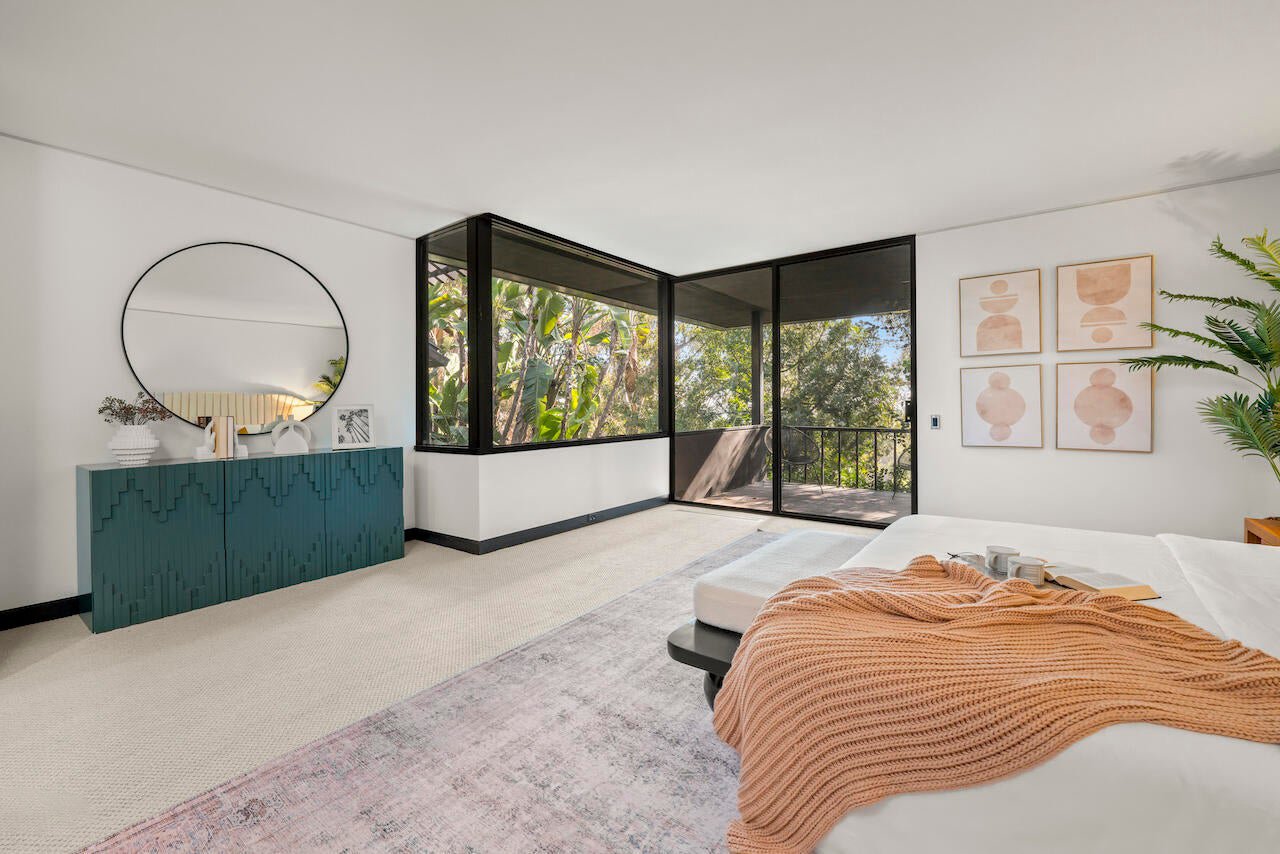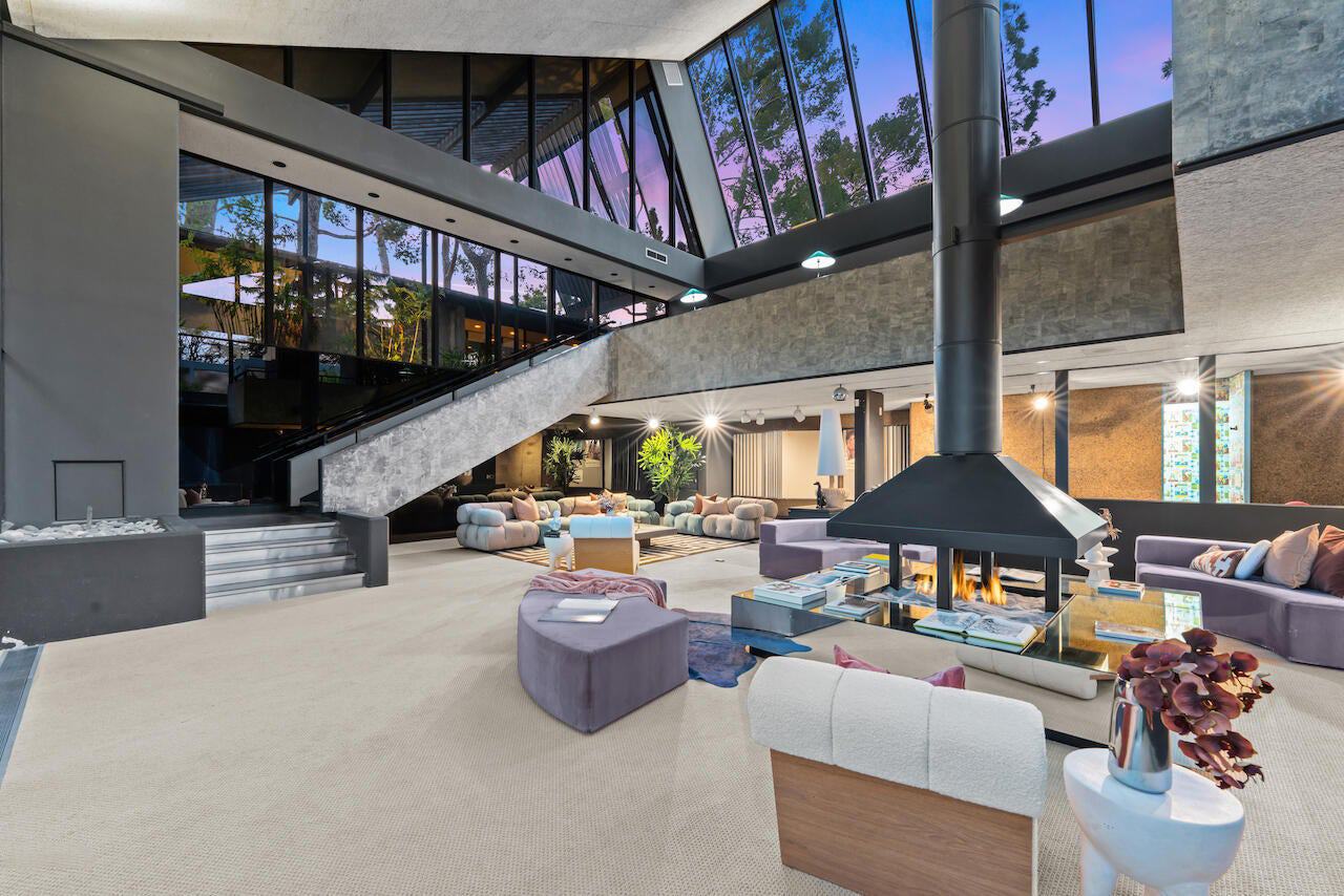 Live in an architectural masterpiece of the modernist style. Your residence was built in 1973 by Quincy Jones, a luminary and AIA award-winning architect. Jones' aesthetic runs throughout the home, from the intimate connection with nature to the high ceilings and walls of glass. You'll feel like you are in a treehouse as the home cantilevers over its elevated lot and into the surrounding vegetation. The open-plan design and striking setting create the perfect backdrop for all-season entertaining. Walls of glass bring in a ton of light and stunning views in every direction. The interior spaces flow seamlessly, offering an endless supply of picturesque vignettes marrying the built and natural environment. No matter your mood, 1100 Paso Alto Road is a place for revelry and rest. Enjoy a private view from your primary suite balcony, or pick a bench outside. The thoughtful design of the outdoor living area invites serenity to the soundtrack of trickling water.