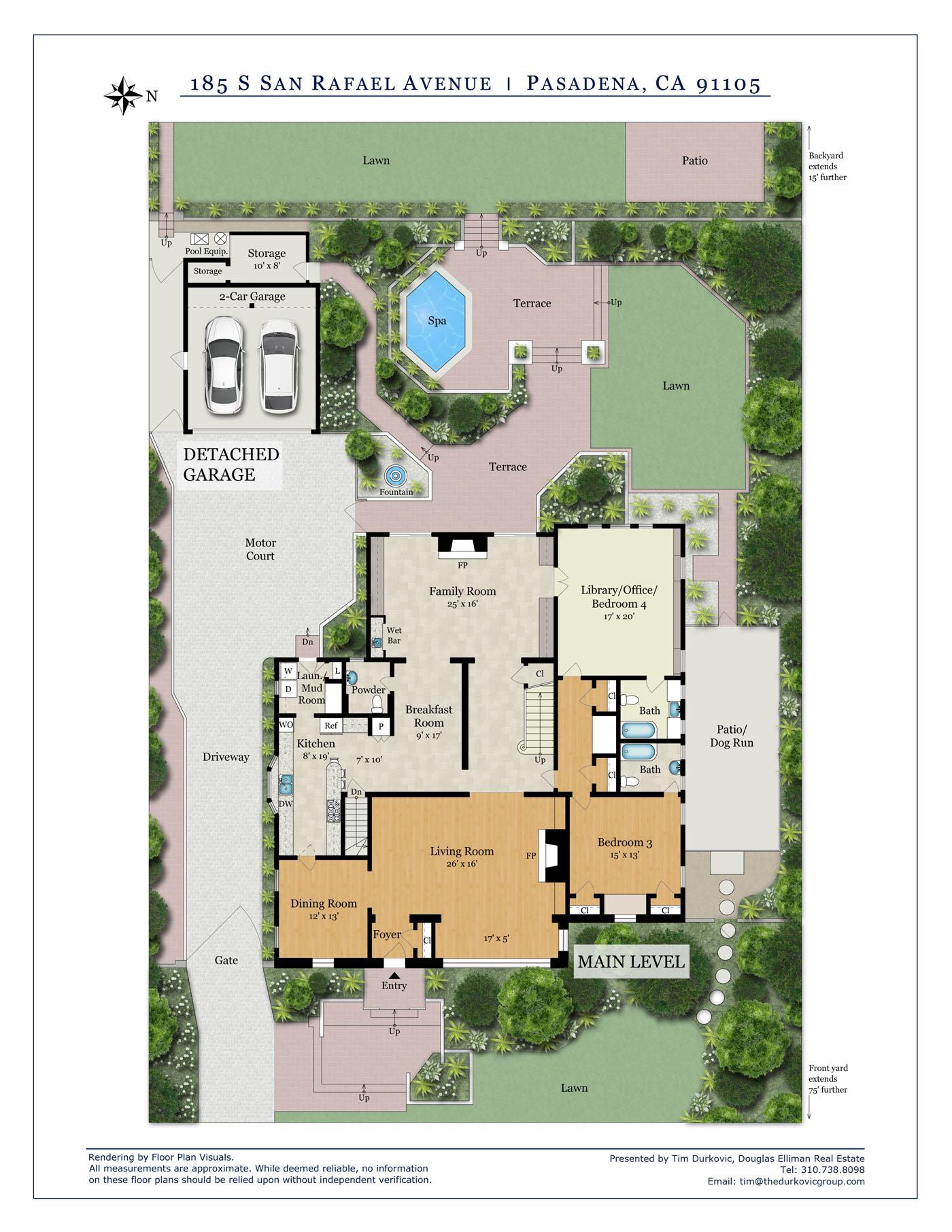 This idyllic English Country Manor is situated on one of the most sought-after streets in Pasadena. The manicured grounds set the stage for this brick-front home that is full of character and warmth. Architectural details including high ceilings, exposed beams, a fireplace and wall of windows that overlooks the front yard enhance the formal living room with peg and groove floors that run through to the formal dining room unifying the spaces. A gracious hallway leads to the family room which has exposed beams, a fireplace, wet bar, built-in cabinetry and access to a magical back yard. The large breakfast room is open to the updated kitchen with stainless steel appliances, custom cabinetry and granite counters. Two bedrooms, each with its own bathroom, a separate laundry room and powder room complete the main level. Upstairs, the master retreat is appointed with fireplace, large walk-in closet, and spa-like bathroom. A fourth bedroom suite completes the second floor. The large lot is beautifully landscaped and has an in-ground spa, several areas for entertaining and plenty of room to add a pool. The detached 2-car garage provides plenty of room for parking. Close to shopping, restaurants and the conveniences of town, this gracious home is not to be missed!