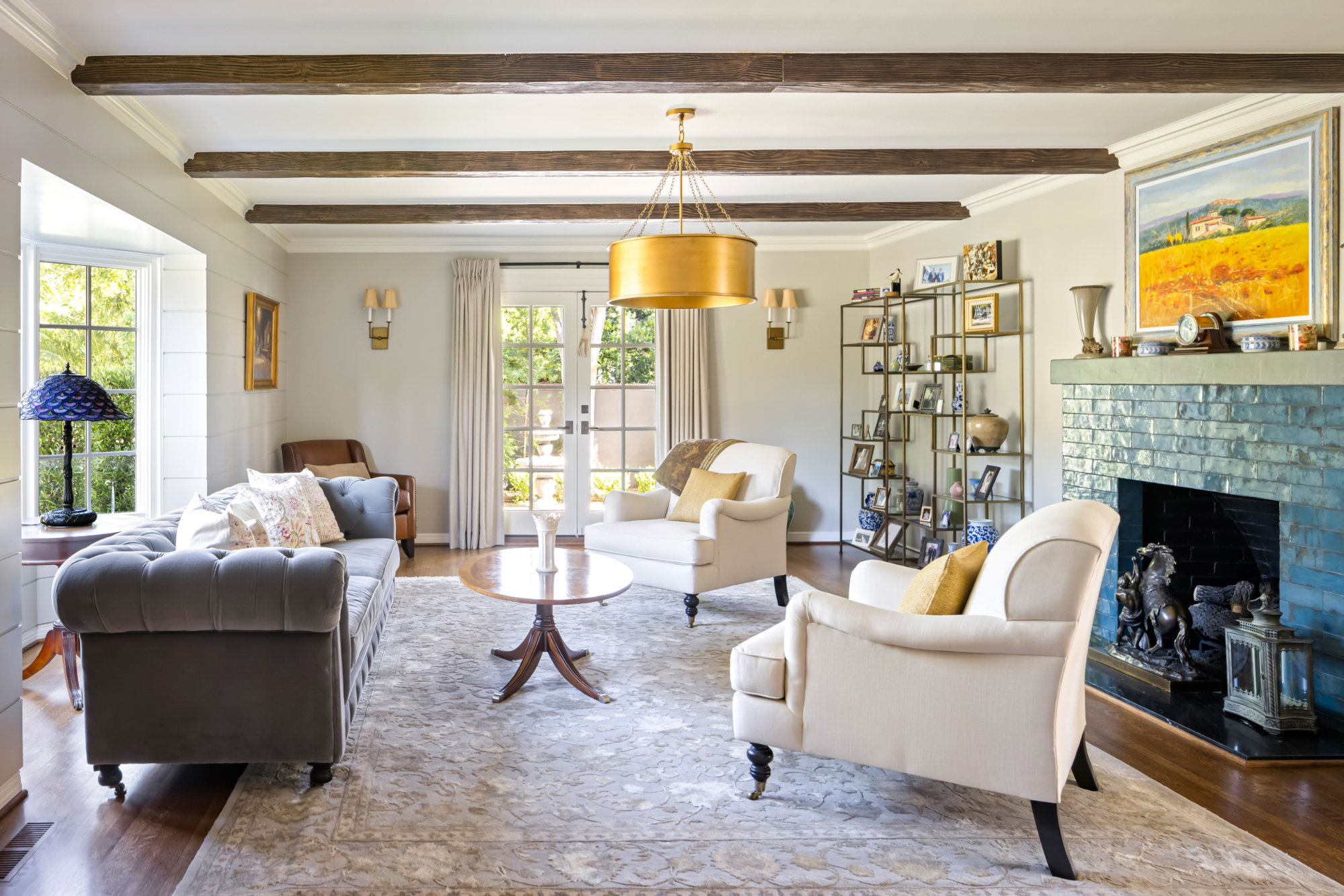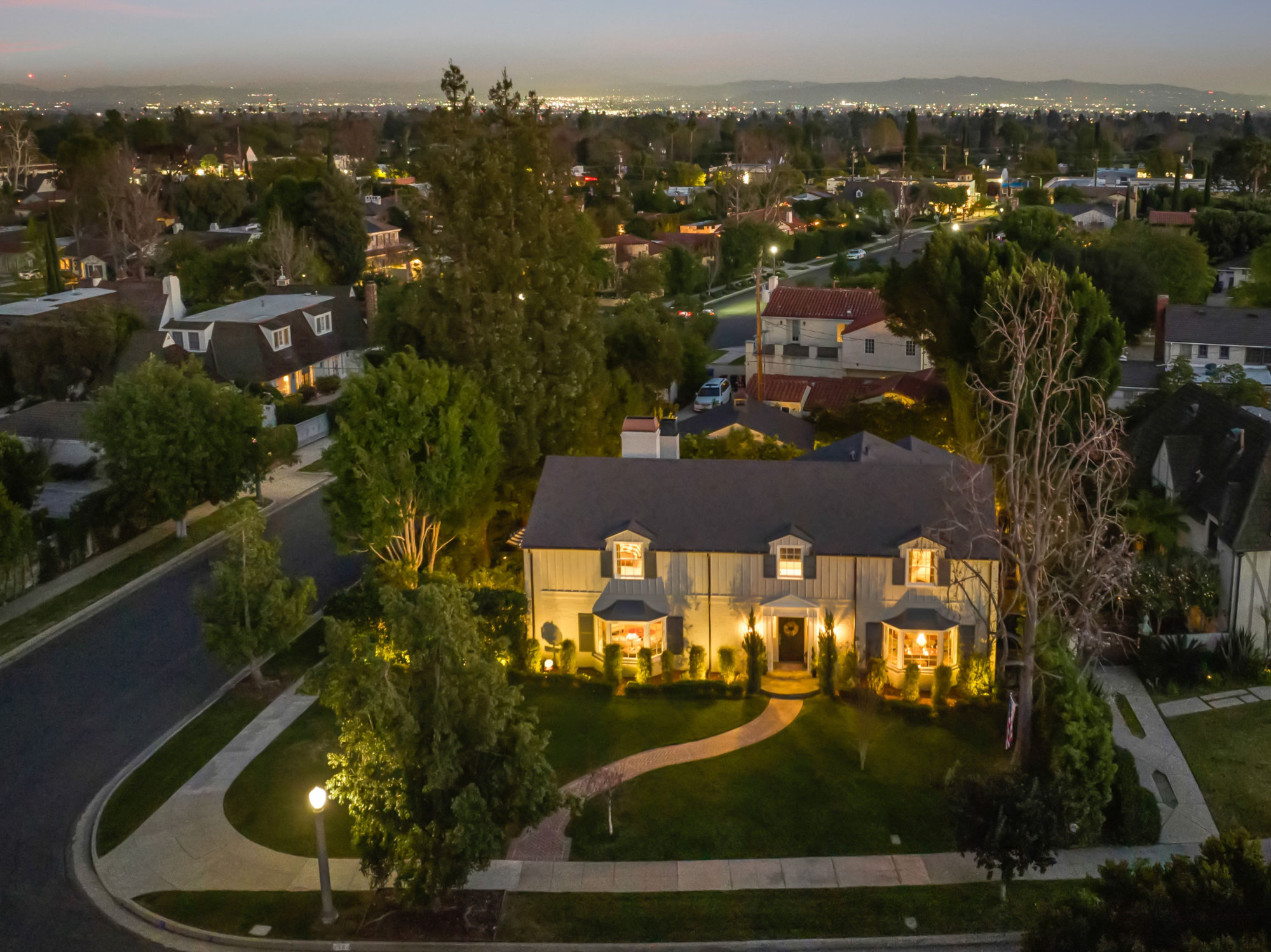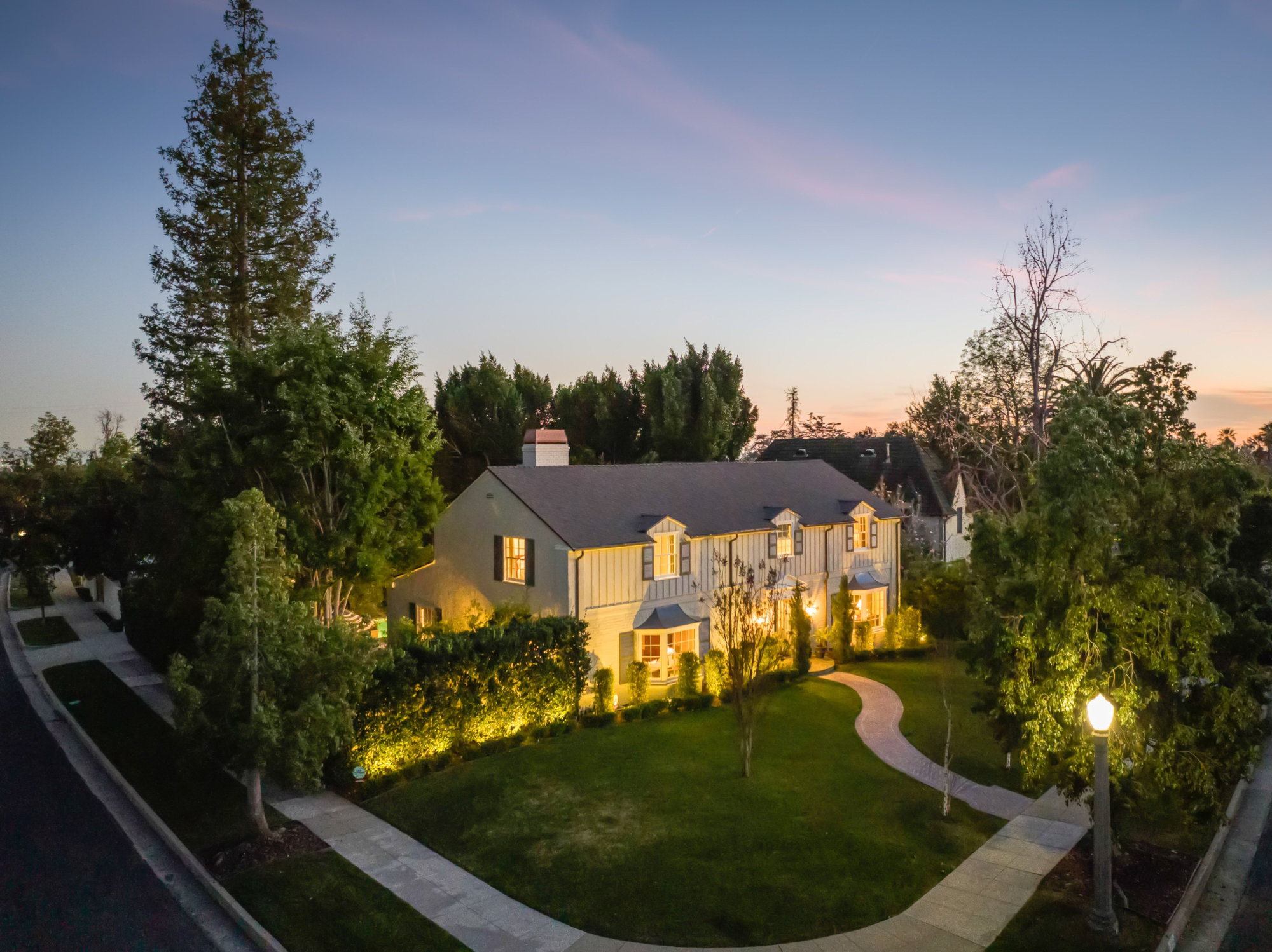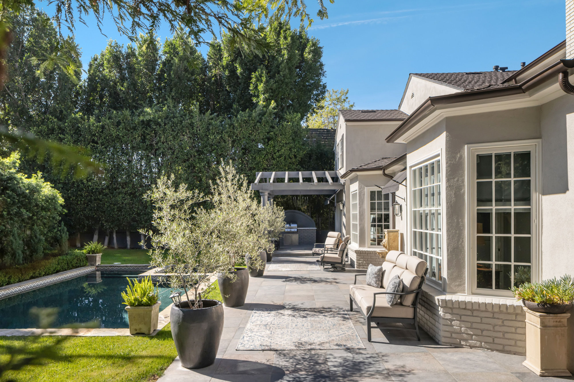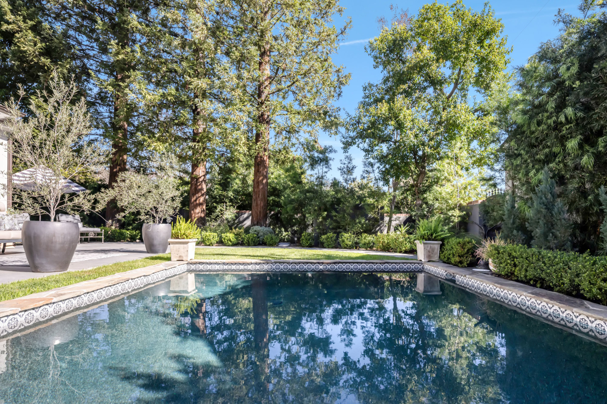 The second level offers a tranquil retreat with a cozy den and three spacious ensuite bedrooms, each exquisitely appointed with custom details. Luxurious touches abound in the renovated bathrooms, showcasing soaking tubs, marble accents, and high-end fixtures. Original hardwood floors throughout the home add warmth and character, while the expansive park-like lot, newly landscaped gardens, and sparkling pool and spa create a private oasis for relaxation and entertainment.