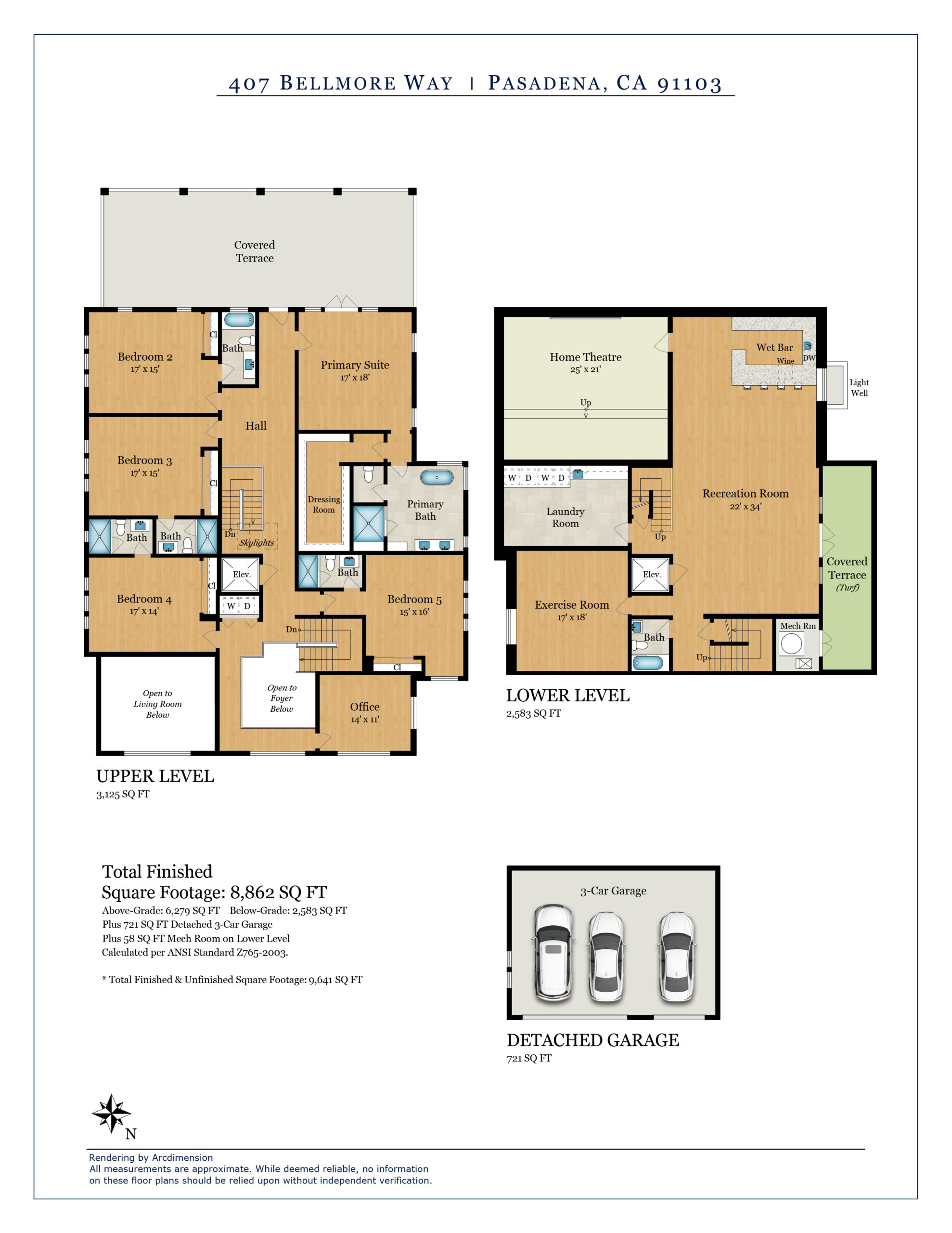 Brand-new, ground-up construction!! Welcome to 407 Bellmore Way, a stunning Modern Craftsman-Style home in the coveted area of Prospect Park of Pasadena, California. Presented by GenLux Development and Everest Development with interiors by Mark Liddell Design, this property is a true masterpiece of design and functionality. Sitting behind gates on just under an acre of land, this expansive property spans 8,769 square feet and offers unparalleled luxury living. Boasting 6 bedroom suites, 9 bathrooms, 2 offices, formal living and dining rooms, a butler's pantry and large chef's kitchen that is open to an expansive family room, this home offers all the amenities for comfortable living. The fully finished basement features a large recreation room, movie theater, gym, laundry room, and full bathroom ensuring that there is always something to keep you entertained. The property also features approximately 3,000 square feet of covered patio spaces, a secondary laundry area on the second floor, a large BBQ area, a 40-foot pool, spa, fire-pit and a three-car garage. All three levels of the home are connected with a state-of-the-art elevator as well as two staircases. As a brand new, ground-up construction, this property has been meticulously designed and built with the highest quality materials and craftsmanship, ensuring that it meets the needs and desires of even the most discerning buyer and combining a nod to the traditional as well embracing today's modern life-style. In highly sought-after Pasadena, new construction of this caliber is rare. Don't miss out on the opportunity to own a truly exceptional property in one of Pasadena's most desirable neighborhoods.