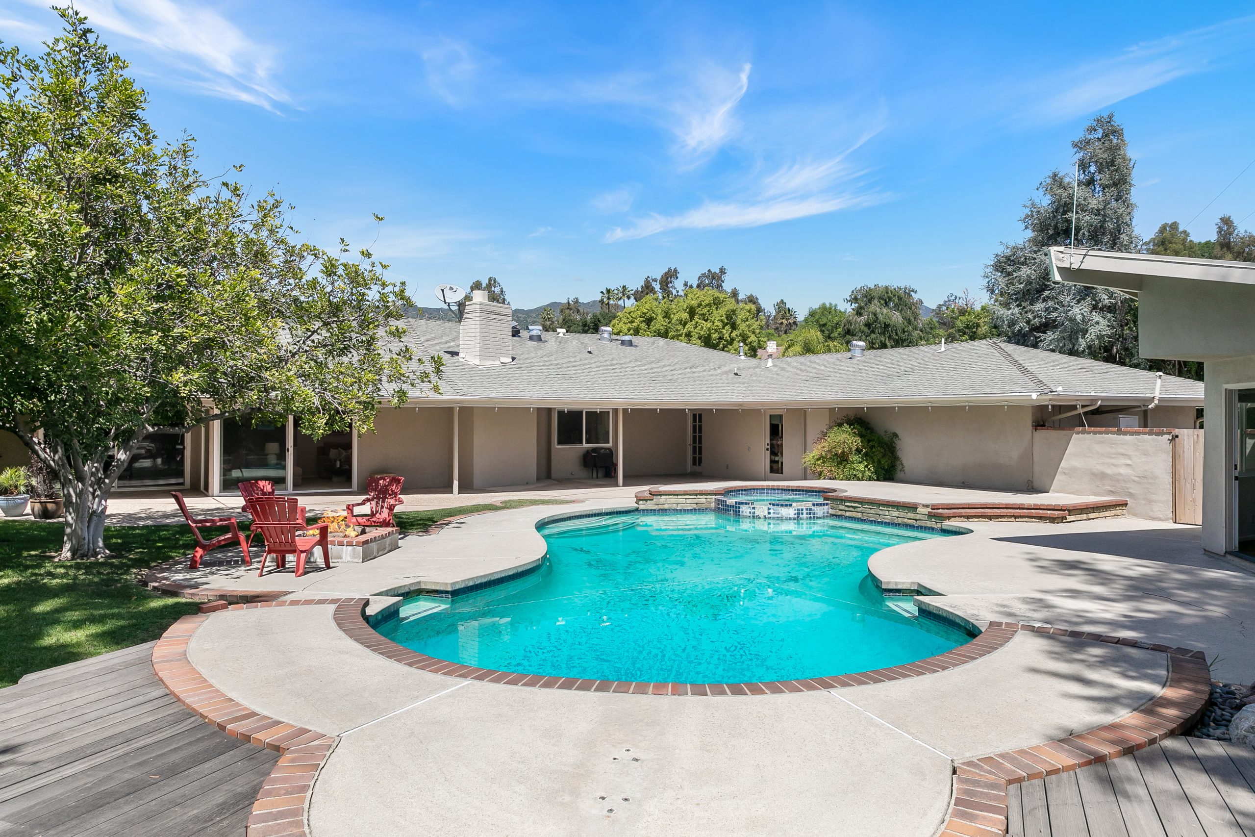 World’s Fair House 1964. History comes alive in this stunning example of late Mid-Century design, built as the West Coast’s version of the “House of the Future” for the World’s Fair 50th anniversary. Set on a generous .42 acre, end of cul-de-sac lot, the noteworthy property has been thoughtfully maintained and updated for contemporary indoor/outdoor living, including a remodeled chef’s kitchen, media room/photography studio, and a large, entertainer’s yard with pool, spa and 245 sqft pool house. A total of 4 beds and 4 full baths are featured throughout the light-filled, single-level residence, welcoming you from a gabled portico and tiled foyer to an open living and dining room centered on a dramatic, floor-to-ceiling stone fireplace. The family room, equipped with surround sound and sliders to the yard, offers breakfast-bar dining open to the kitchen upgraded with chic countertops and cabinetry, soothing natural finishes and a suite of high-quality stainless appliances. The western wing hosts three large bedrooms and two baths, including the luxe primary suite with walk-in closet, stylish en-suite bath and private sliding doors to the yard. On the eastern wing are another two full baths, secondary bedroom, laundry/mudroom with built-in storage, and the media room which could serve as a third living space, office or gym. New windows and energy-conserving shades are upgraded throughout, and two zones of AC provide year-round comfort. Enjoy pristine poolside living on the pool deck, lawn and terraced patio with a built-in fire pit, then melt into the sauna installed in the pool house with a convenient half bath and interior lounge. All embraced by an expansive paved motorcourt to your 1-car garage with bonus storage room, tucked on a tranquil cul-de-sac street yet only minutes from the 210 and 57 freeways, dining and shopping hotspots, and miles of mountain trails. Luxury and pedigree unite in this very special home.