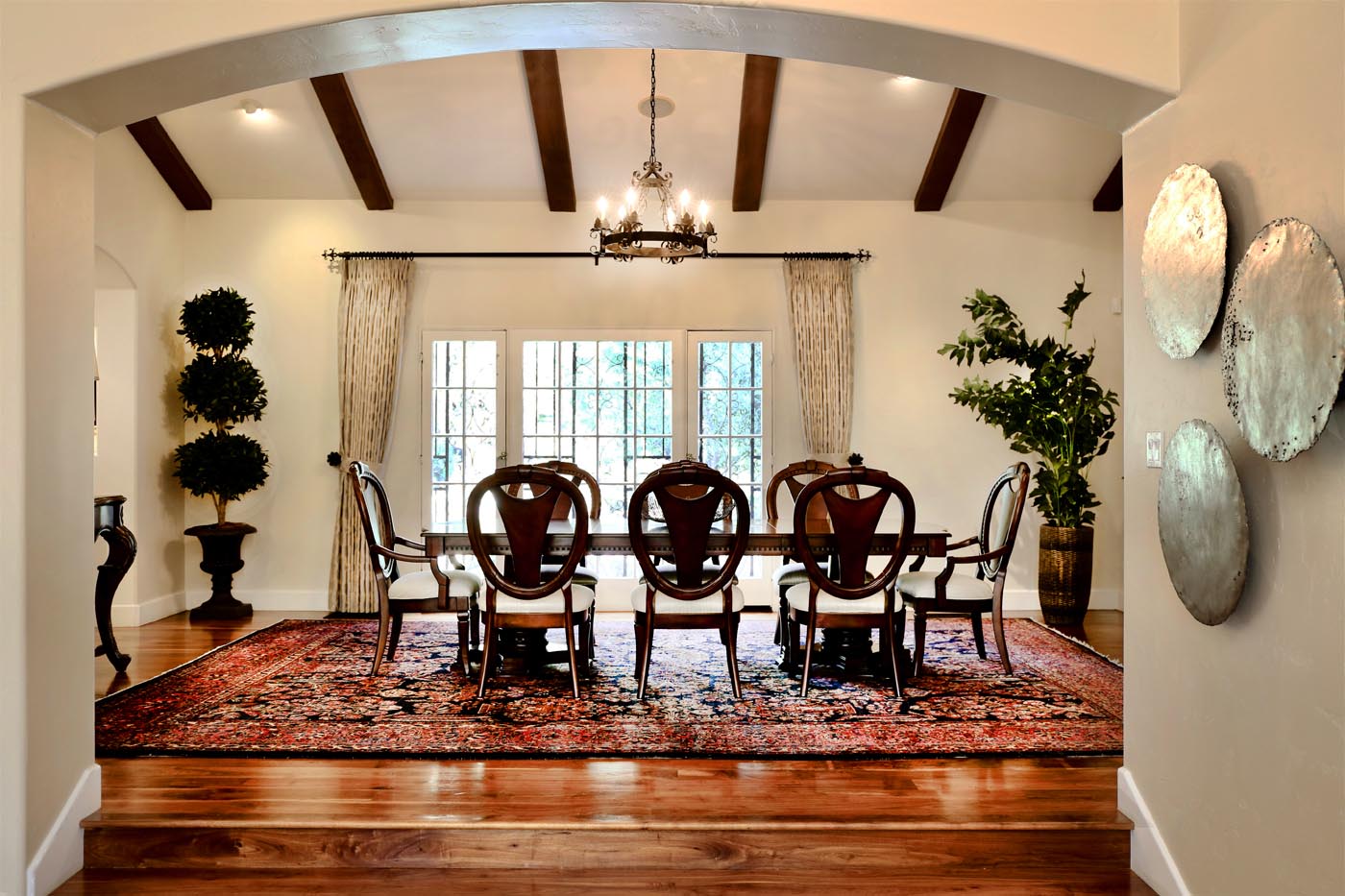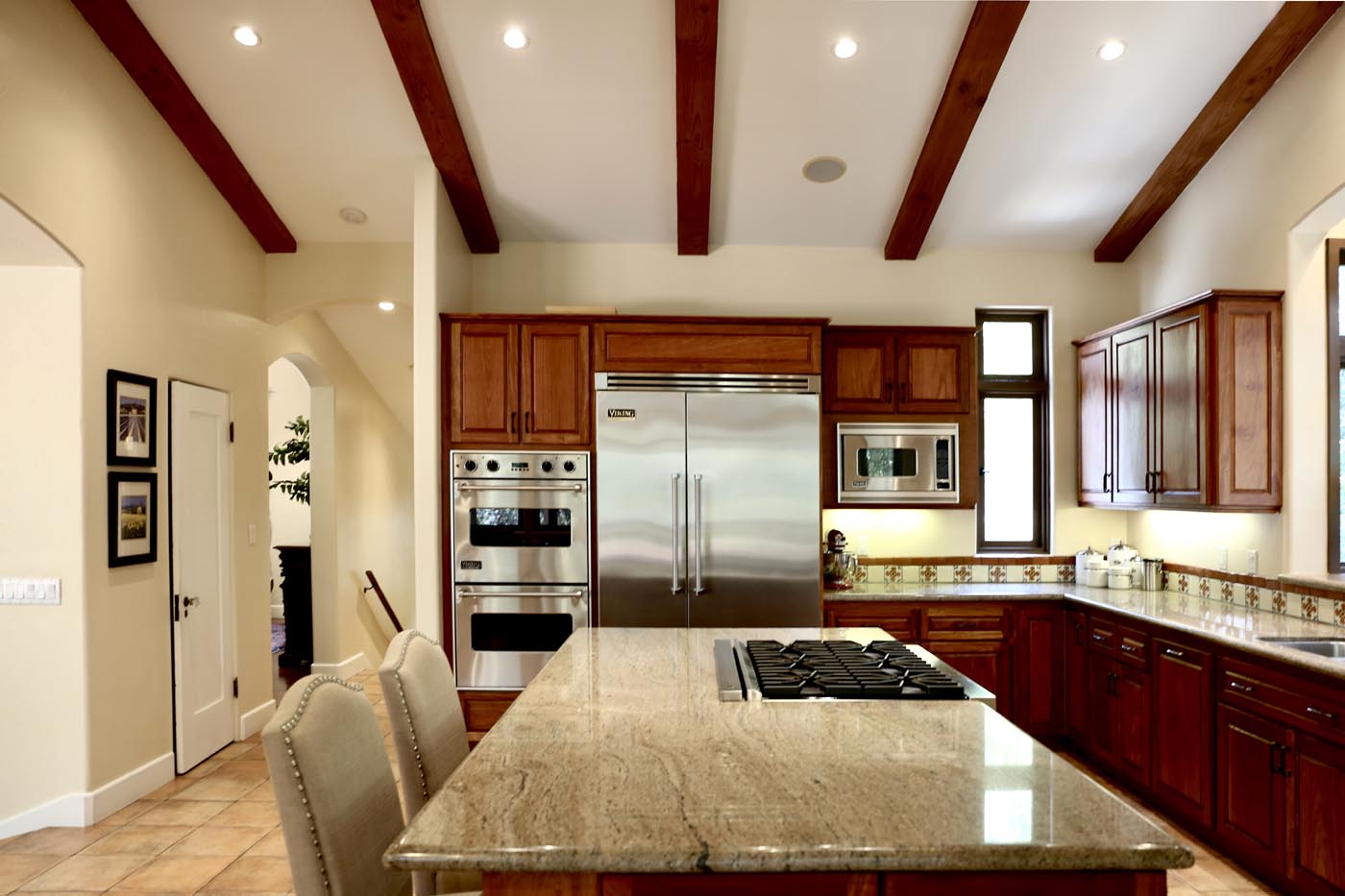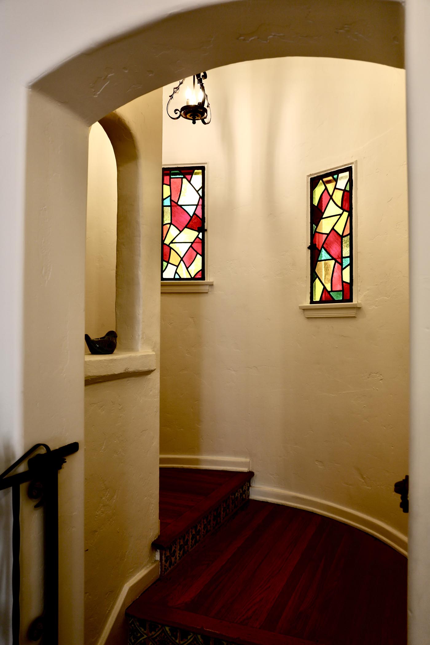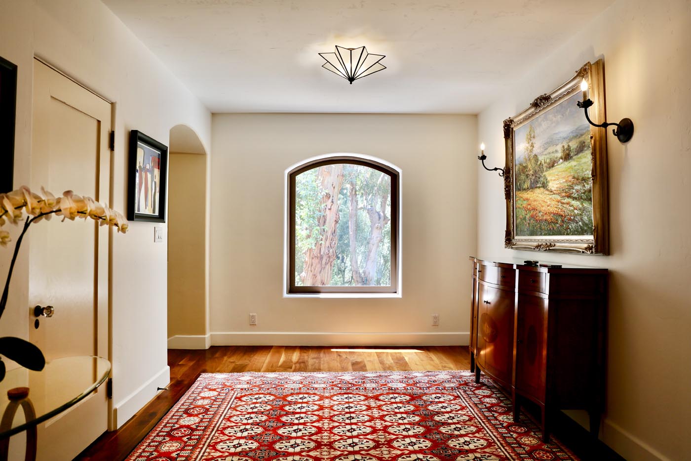 Built in 1926 and once the home of famed car collector/NBC bandleader Don Ricardo, this classic Spanish Revivalist estate has been lovingly renewed to embrace both modern living and historic heritage. A gated, wraparound driveway welcomes you from a tranquil street in the coveted South San Rafael community, offering private access to the generous motor court and 6 garage spaces. The property includes an expensive, terraced yard ready to host large gatherings, with luxurious covered dining spaces, room for a pool, and an additional 610 sq ft gym space and 370 sq ft studio. Inside, the 4,240 sq ft interior boasts an airy, open flow through elegant archways, transitioning from a fireplace living room to formal dining and the gourmet chef’s kitchen, all artfully adorned with open-beam ceilings and vibrant tile accents. French doors reveal a 620 sq ft covered outdoor living space anchored by a charming outdoor fireplace. The main level hosts the plush primary suite showcasing a roomy walk-in closet and travertine en-suite bath. Ample accommodations for family and guests include three upstairs bedrooms, one used as an office, plus the 5th bedroom suite on the lower level with a separate entrance. Large windows overlook mature, manicured landscaping on the property grounds, while stained glass, rich hardwood floors and woodworking enhance the sense of character and comfort. All in an exceptional South Arroyo location moments away from Old Town Pasadena, freeways, Rose Bowl and Aquatic Center, local dining, farmers’ market, parks and more. A historic estate with every modern comfort, this incredible offering is truly one-of-a-kind.