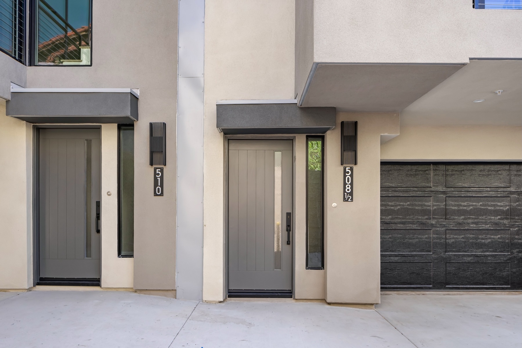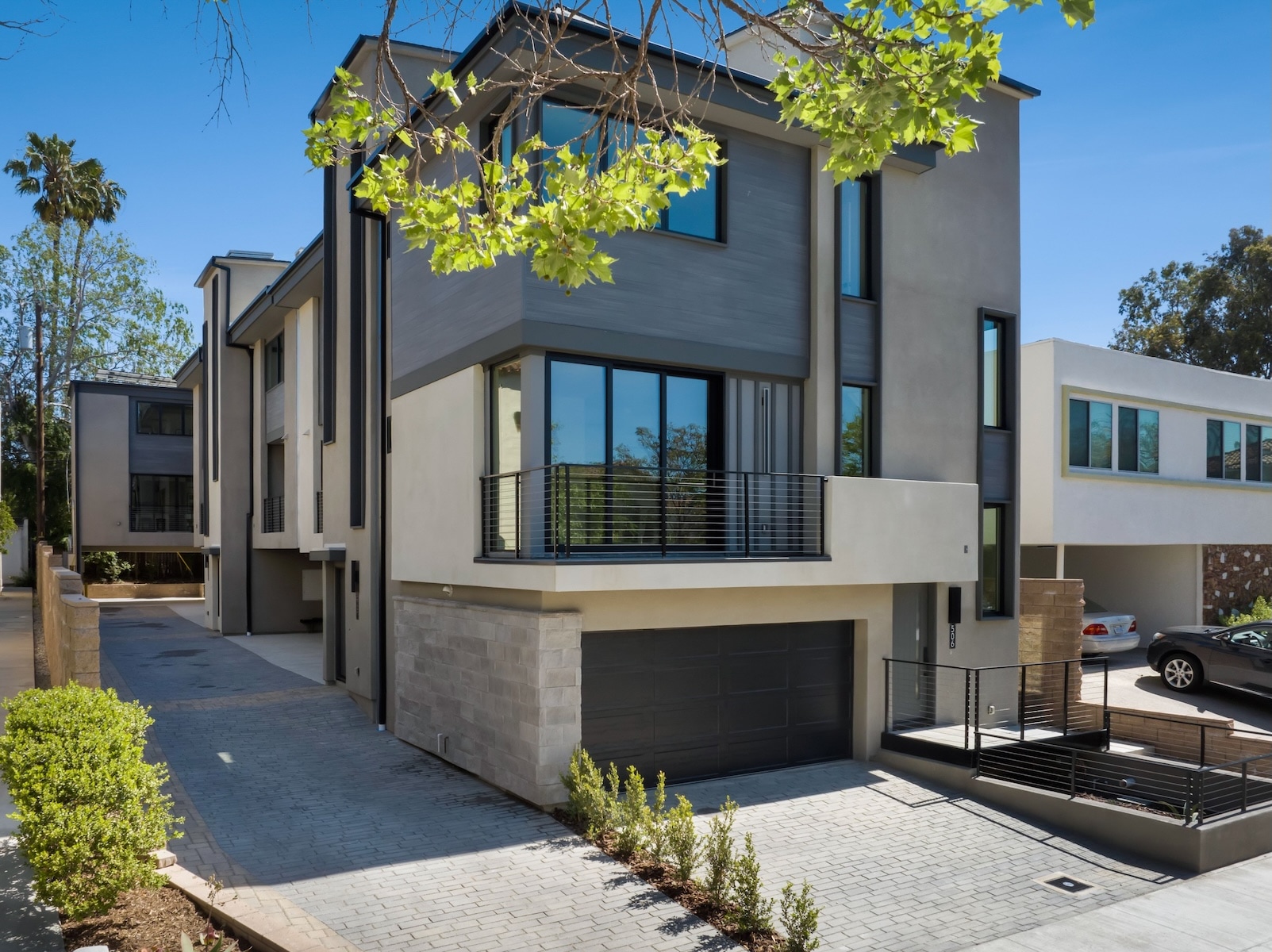 Interiors are appointed with designer finishes and premium Bertazzoni appliance suites, complemented by energy-efficient features such as solar panels, tankless water heaters, and modern split HVAC systems. Four homes include attached two-car garages, while one offers a convenient two-car carport.